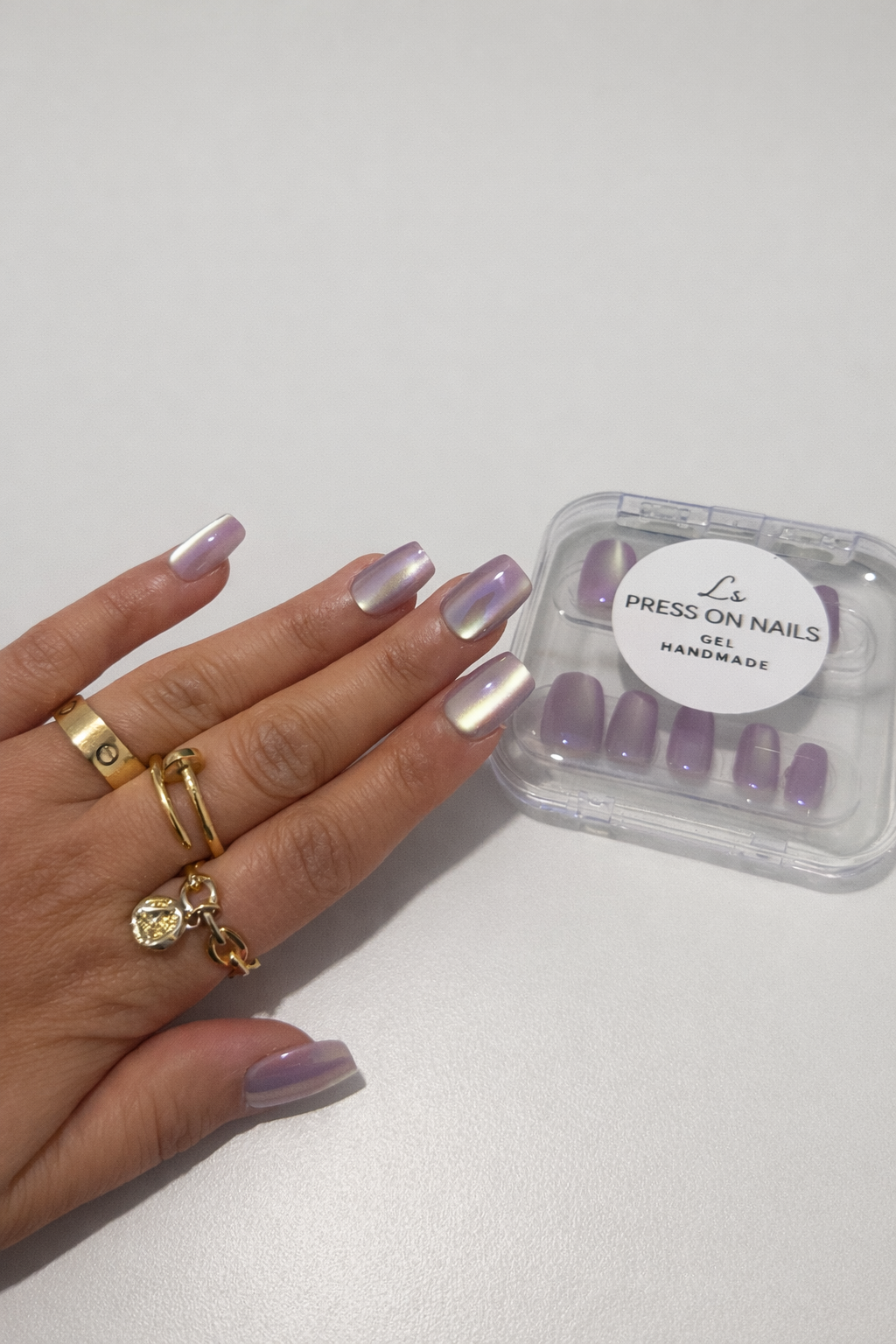 Leur teinte lavande délicate sublimée par un effet irisé nacré capte la lumière à chaque mouvement, pour un rendu chic, moderne et intemporel.